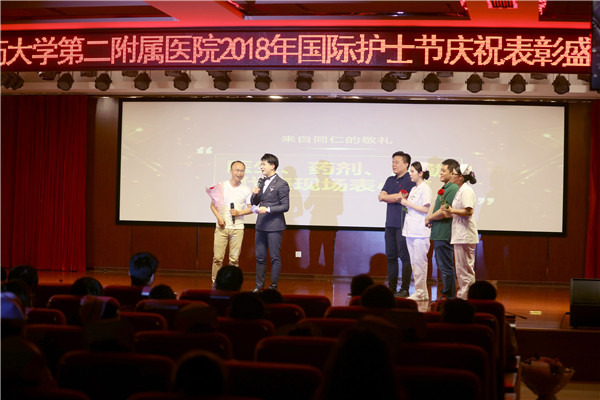 5月11日下午,为庆祝2018国际护士节,表彰优秀、树立典范,湖南中医药大学第二附属医院在医疗教学综合大楼多功能会议厅隆重举行了“致敬!天使”为主题的护士节总结表彰大会。
