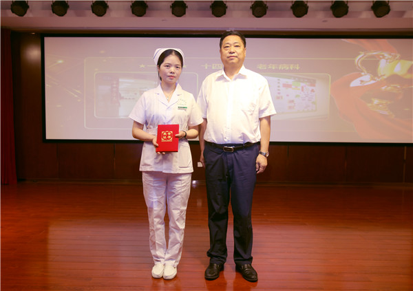 省中医药管理局蔡宏坤为全省优质护理服务突出个人钟小平颁奖