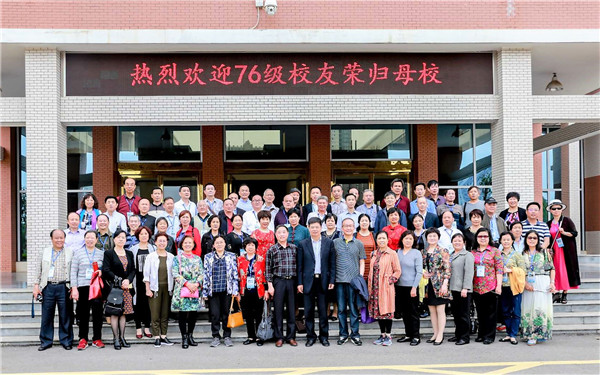 最后,彭清华与七六级校友在行政楼前合影留念,并送上真诚的祝愿,希望校友们常回来看看。