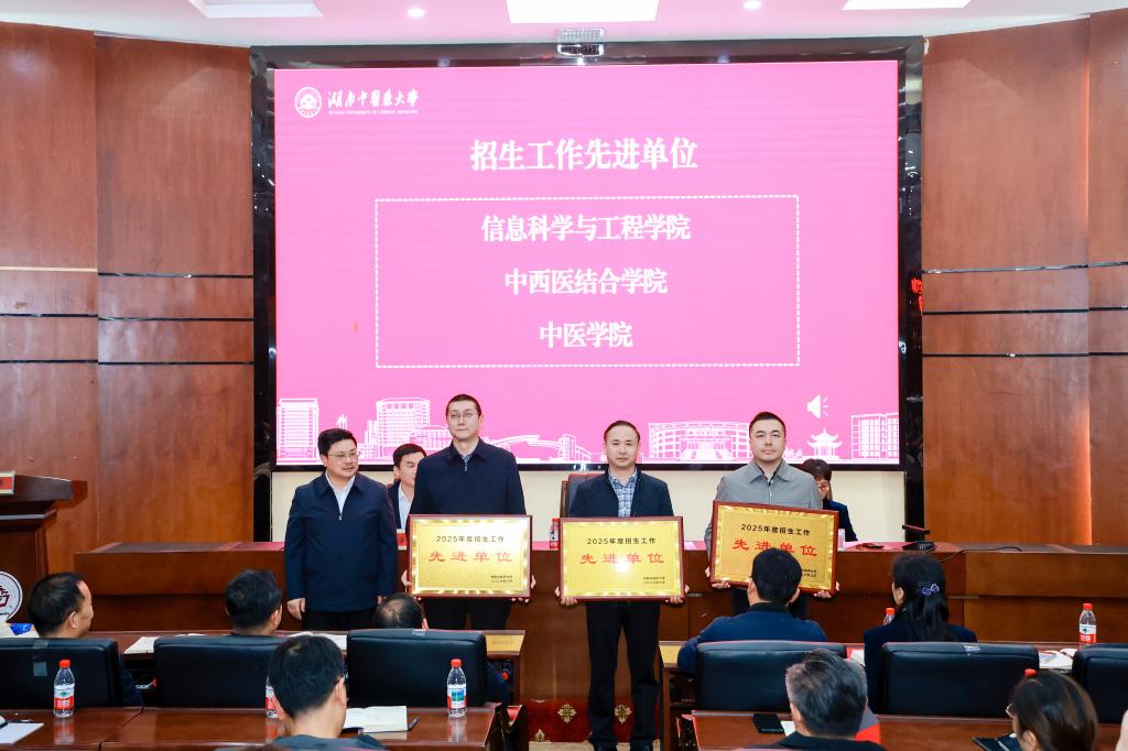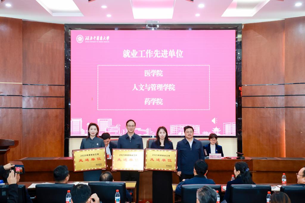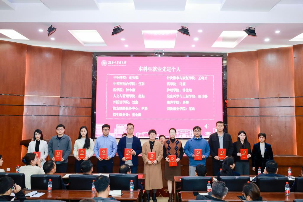 会上,喻嵘宣读了《关于表彰湖南中医药大学2025年度全日制本科招生就业工作先进单位和就业工作先进个人的决定》。