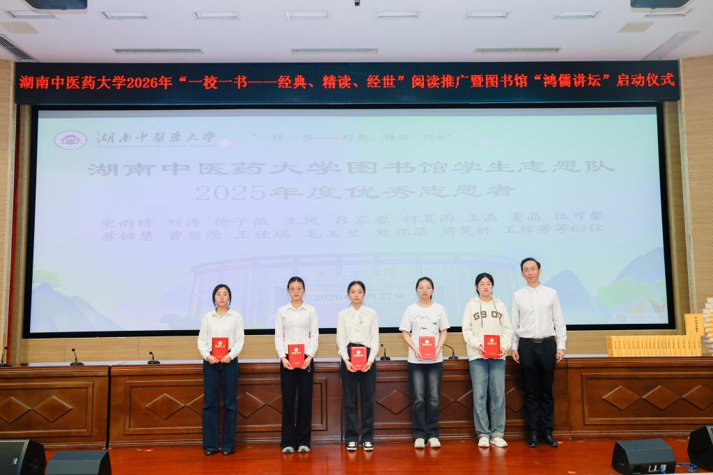 启动仪式上,戴爱国指出,高校作为文化传承与人才培养的主阵地,阅读是立德树人的基础工程。他指出,一是要爱读书、读好书、善读书,中医药学子既要深耕中医经典,也要广涉中华优秀传统文化,做到学以致用;二是要读以增智、读以修身、读以明志,以阅读涵养智慧、锤炼品德、坚定理想;三是要共建书香校园、共筑书香社会,持续擦亮“一校一书”品牌,打造兼具湖湘特色与中医底蕴的阅读文化。