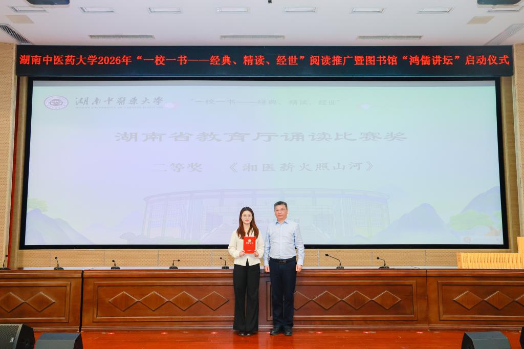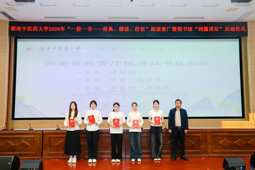 人间四月,书香与文脉交融;杏林校园,经典与传统共生。4月27日,我校2026年“一校一书——经典、精读、经世”阅读推广活动在济世楼学术报告厅启动。