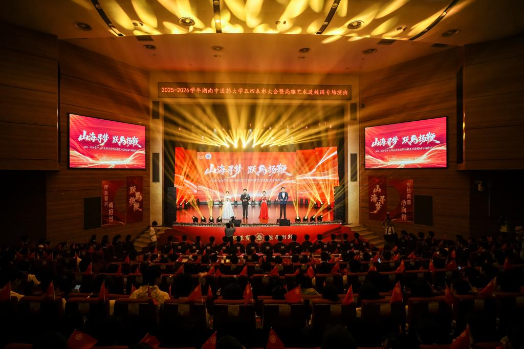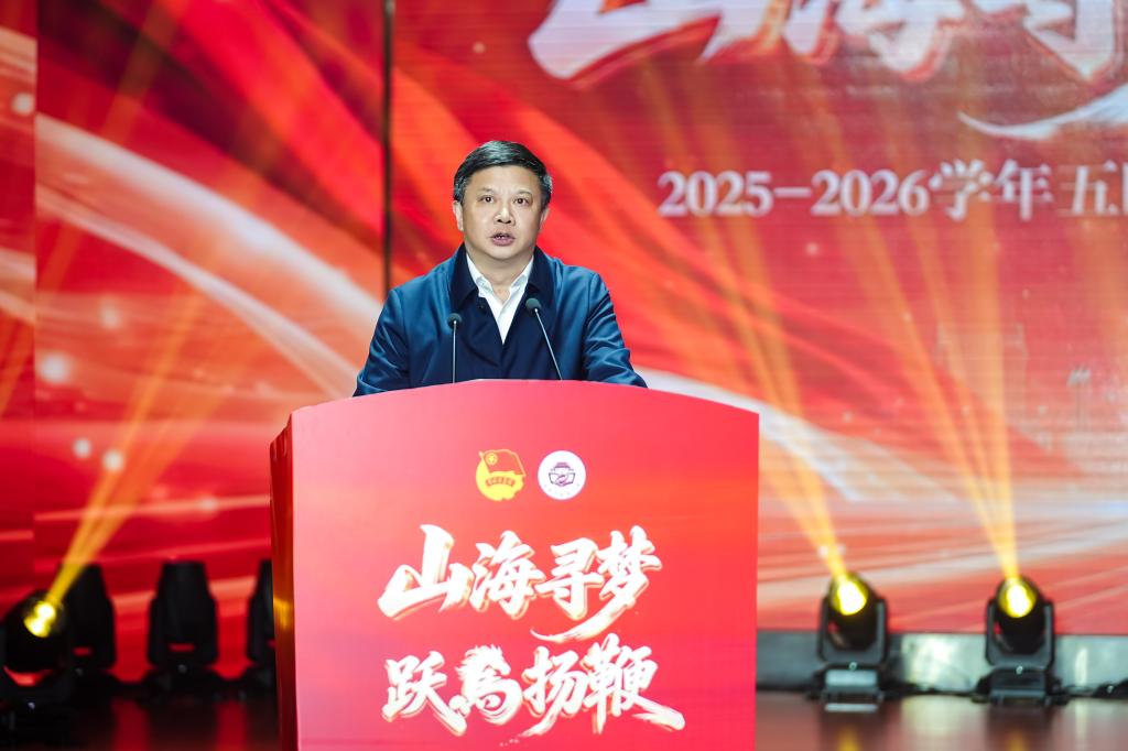 山海寻梦,跃马扬鞭。4月28日晚,我校2025-2026学年五四表彰大会暨高雅艺术进校园专场演出在含浦校区学生活动中心举行。校党委书记戴爱国、党委副书记汤文胜出席活动并讲话,全体在家校领导出席活动,各二级单位负责人、职能部门负责人、分管团学工作负责人、全体专职团学干部及受表彰的师生代表等500余人参加活动。