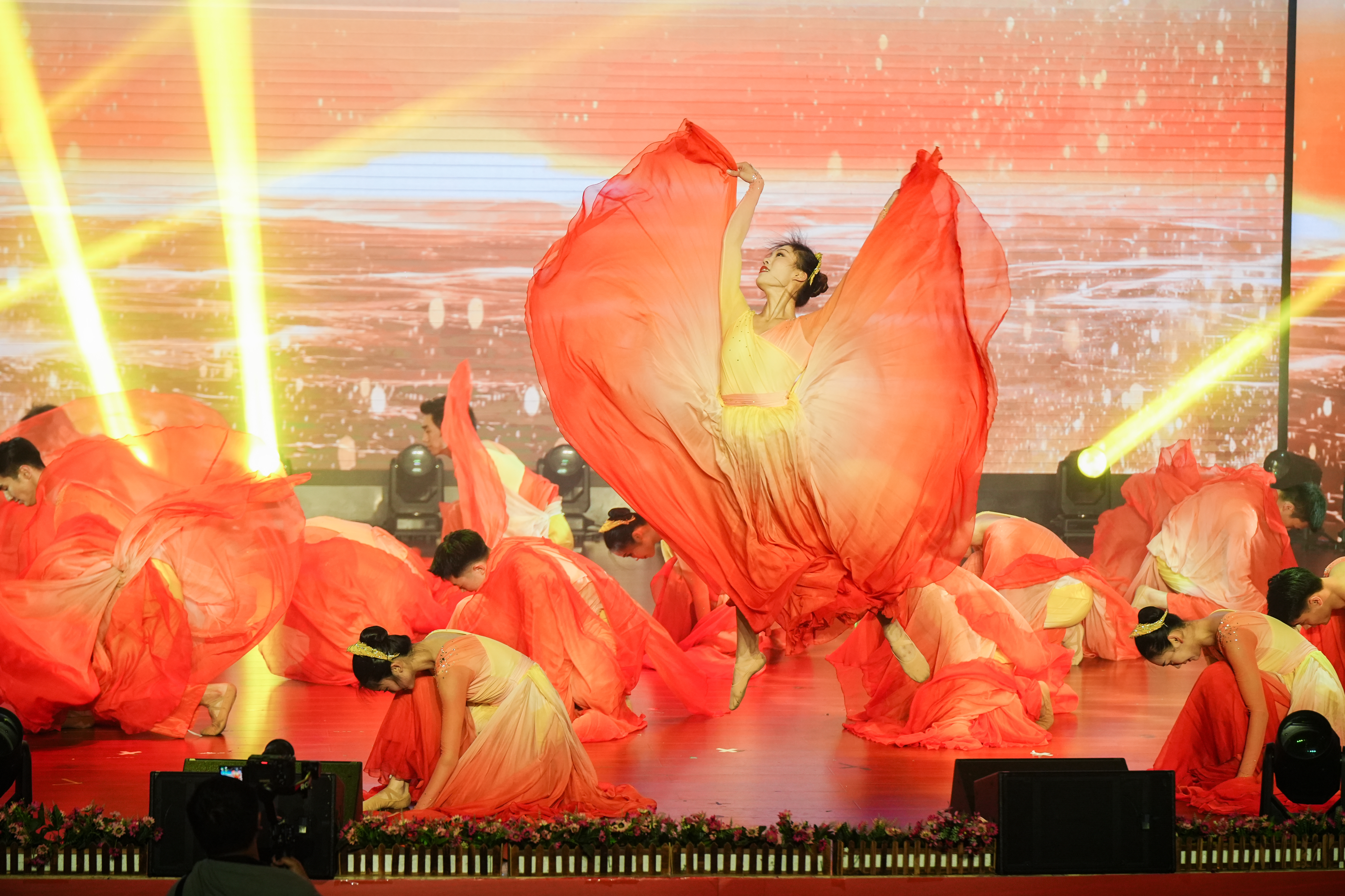 高雅艺术进校园专场演出由湖南省歌舞剧院应邀出演,表演内容涵盖民乐重奏、舞蹈、表演唱等多元形式。女子群舞《潇湘水韵》温婉灵动、尽显湖湘风韵;男子群舞《抢鱼塘》质朴鲜活、讴歌劳动之美;表演唱《天地龙鳞》《少年中国说》慷慨激昂、振奋人心;节选自大型史诗歌舞剧《大地颂歌》的舞蹈《奋斗》刚劲有力、诠释青春担当;民乐演奏《国风雅韵》丝竹悠扬、传承中华文脉;歌伴舞《山海寻梦》气势恢宏、点燃逐梦豪情。、