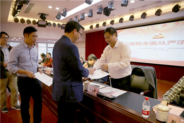 最后,医院领导班子成员、纪委委员、党支部书记、党支部纪检委员、职能部门主要负责人现场签订并递交了2018年党风廉政建设责任书。