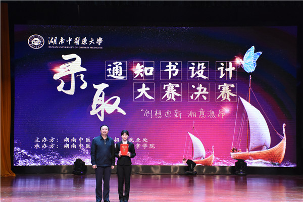 4月26日下午,由招生就业处、针灸推拿学院联合举办的我校录取通知书设计方案征集大赛决赛在大学生活动中心圆满落幕,副校长柏正平,党委(学校)办公室、党委宣传(统战)部、学生工作部、招生就业处、针灸推拿学院相关负责人出席了本次活动。