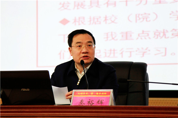 秦裕辉立足校(院)当前发展实际,从加强党的建设,不断深化全面从严治党;全面深化改革,加强管理,强力推动重点领域改革工作;坚持教学中心地位,着力提升人才培养质量和教学工作水平;加强顶层设计,全面推进一流学科建设;修订和完善科研管理制度,有效提升科研能力和水平;优化行政效能,不断增强服务师生水平能力;更加关注民生,切实提高教职工幸福指数;全力推进重点工程建设等八个方面,对推动新时代校(院)持续健康发展的总体要求和各项任务作了工作部署、提出要求与期望。他强调,校(院)各级领导干部一定要把贯彻落实全国“两会”精神与贯彻落实习近平新时代中国特色社会主义思想和党的十九大、十九届二中、三中全会精神结合起来,与贯彻落实校(院)第三次党代会、校(院)“十三五”发展规划结合起来,坚持一件事情接着一件事情办,一年接着一年干,切实把精神学习转化为推动校(院)改革发展工作的实际成效,为湖南中医药事业发展、为满足人民群众日益增长的健康生活需要做出我们新的更大的贡献。