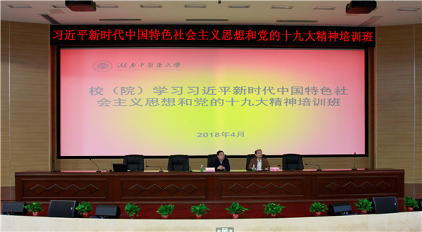 4月19日,校(院)学习贯彻习近平新时代中国特色社会主义思想和党的十九大精神培训班在三号教学楼一楼学术报告厅开班。校(院)党委书记秦裕辉,校(院)党委副书记肖小芹出席开班式并分别作专题讲座。开班式由校(院)党委委员、组织人事部部长廖菁主持,校(院)全体处级干部、党支部书记共220多人参加培训。