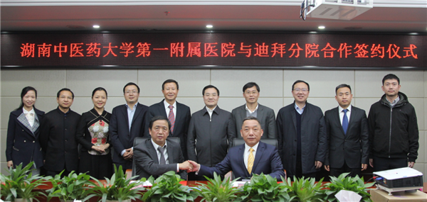 1月15日,我校第一附属医院、迪拜协和医院在深圳签订合作协议,双方将共同组建“湖南中医药大学第一附属医院迪拜分院”。我校(院)党委书记秦裕辉、省中医药管理局副局长肖文明、附一院院长陈新宇等出席了此次签约仪式。