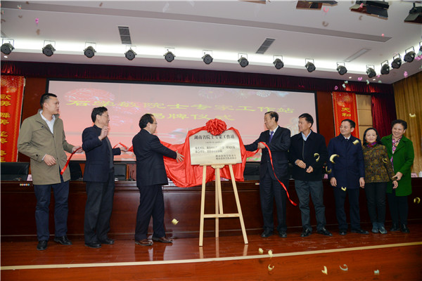 1月18日,省针灸推拿学科领域第一个省级院士专家工作站--“石学敏院士专家工作站”正式落户我校第一附属医院,石学敏院士,湖南省科技厅、湖南省科协、湖南省中医药管理局、湖南中医药大学及第一附属医院、浏阳市中医医院等领导共同为院士专家工作站揭牌。