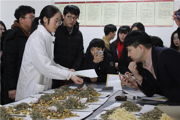 2017年12月28日至2018年1月18日,韩国圆光大学药学院韩药科21名学生来我校交流访问,开启了为期22天的中医药文化之旅。本次交流活动以传统中医药和湖湘文化体验为主线,开设了中药、推拿、传统保健、中国传统文化和汉语口语等课程。学生通过中韩文双语授课学习了中药概况、中药鉴定、中医推拿、五禽戏、湖湘文化等知识,课余参观了学校校园、中药标本馆,附属医院等。