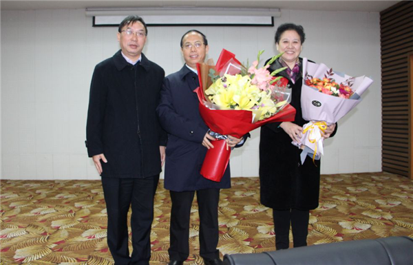 何清湖对参加本次大会的各位领导及代表表示热烈的欢迎,对梁繁荣教授、常小荣教授入选“国家万人计划-教学名师”表示热烈祝贺,并亲自献花。