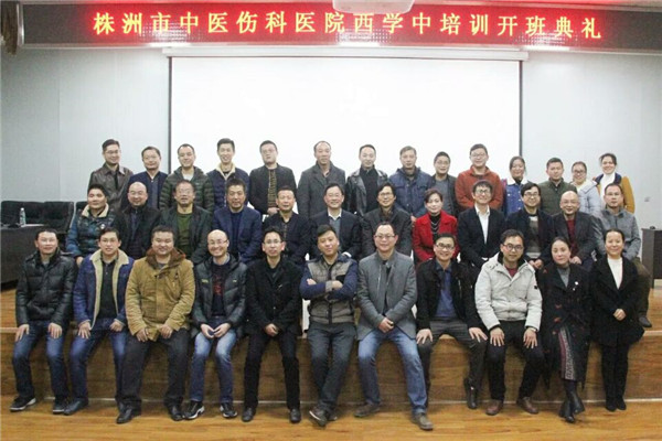 11月29日下午,由我校中西医结合学院与株洲中医伤科医院联合举办的中医医疗机构西医人员学习中医知识(简称“ 西学中”)培训班开班仪式在株洲中医伤科医院多媒体会议室举行。省中医药管理局副局长毛泽禾、株洲市卫计委副主任刘建军、株洲市中医伤科医院党委书记吴敬红、我校中西医结合学院党委书记肖子曾及50名学员参加了当天的开班仪式。