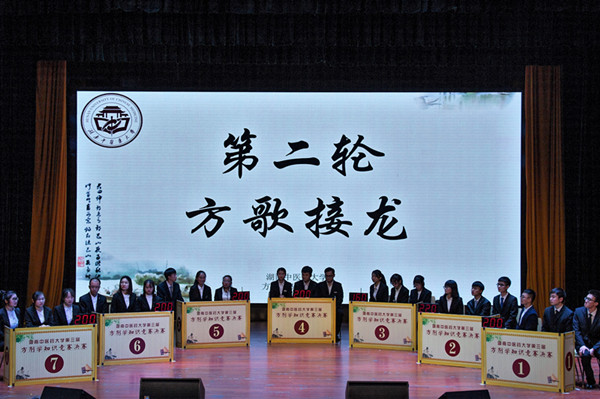 12月10日晚,由教务处、校团委、中医学院主办的第三届方剂学知识大赛决赛在含浦校区大学生活动中心拉开帷幕,副校长彭清华,教务处、中医学院等相关负责人及我校500多名学生观看了比赛。