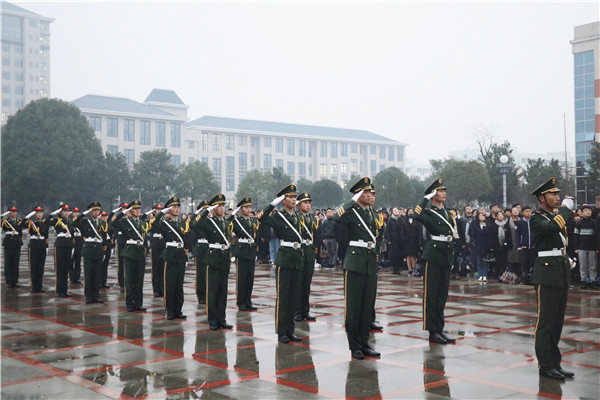 12月13日上午,校团委组织开展了“南京大屠杀死难者国家公祭日”升国旗降半旗仪式。国旗仪仗队全体成员以及自发赶来的师生共同参与了此次仪式。