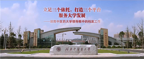 该视频从三方面介绍了我校的档案工作。一是依托大学底蕴,打造综合服务平台。近年来,我校档案工作以“四个完善”为着力点,加大投入和建设力度,取得了长足发展进步,着力提高了档案的查询、利用效率,有力发挥了查考凭据、参考依据、生动素材等综合服务功能。当前,档案馆馆藏两个全宗,共分为党群、行政、学生、教学、科研、基建、仪器设备、产品、出版、外事、财会11大类。目前档案馆馆藏档案8000余卷;二是依托中医药文化,打造特色服务平台。我校的档案工作具有鲜明的中医药特色,最大的特色就是“活”,也就是中医药活档案,它们是中医药的成果宝库,是中医文化的记载和传承。我校建有中药标本馆、针灸陈列馆、人体科学馆。其中中药标本馆收藏各类药材标本等共2万余份,针灸陈列馆是全国最早、馆藏文物最多的专业博物馆。人体科学馆是湖南省科普基地。三馆目前已接待20多个国家近10万余人次参观;三是依托现代信息技术,打造智慧服务平台。近年来,我校完成了档案工作信息平台建设,实现了两校区档案查询“无缝对接”;实现了办公系统自动化,将档案管理纳入学校信息化管理平台;实现了档案存储电子化、档案查询便捷化。