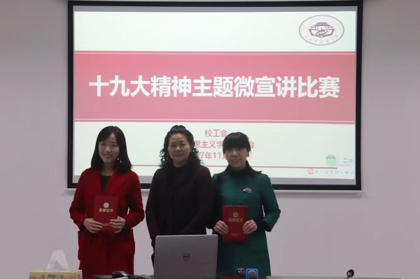 11月15日晚,由校工会主办、马克思主义学院承办的“十九大”精神教职工主题微宣讲活动在院会议室举行。校(院)纪委书记张玉芬、校工会常务副主席李春湘、校党委宣传统战部部长宋翠平、马克思主义学院党总支书记叶利军、副院长黄汀担任比赛评委,马克思主义学院共10名中青年教师参加了此次微宣讲比赛。