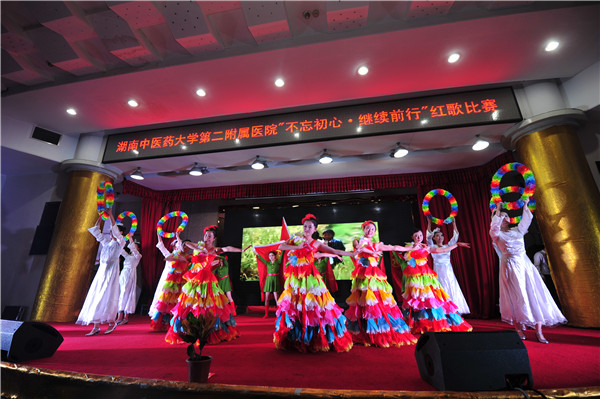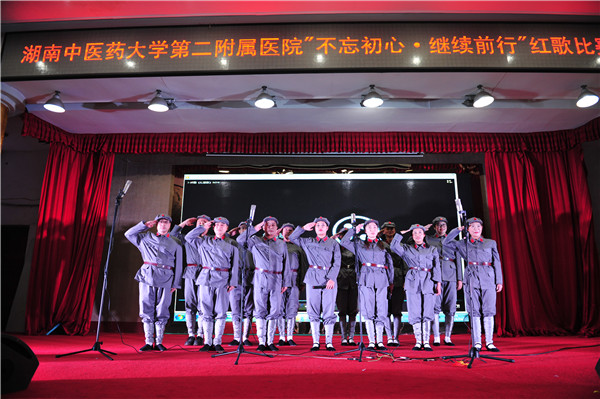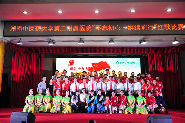 一首红歌,一段历史;一首红歌,一面旗帜。为庆祝党的十九大胜利闭幕、中国人民解放军建军90周年,经过一个多月的精心筹备,11月16日晚上,附二院举办了“不忘初心•继续前行”红歌比赛。医院领导班子成员任比赛评委,来自医院的8个党支部队伍、百余名选手参加本次比赛,400多名职工及其家属观看比赛。