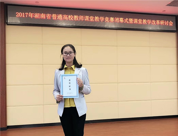 10月28日,由湖南省教育厅、省教育工会联合主办的2017年湖南省普通高校教师课堂教学竞赛在中南林业科技大学举行。我校参赛教师凭借扎实的教学基本功,娴熟的教学技巧,饱满的激情讲授,获得现场教师与学生评委们一致肯定,荣获一等奖3项。其中,中医学院谢雪姣老师以小组第1名获理科组一等奖,人文社科学院张丹老师以小组第1名获外语组一等奖,管理与信息工程学院刘雅兰老师获文科一组一等奖;同时,学校以周密组织首次获得“优秀组织奖”。