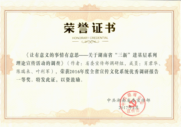获2016年度全省宣传文化系统优秀调研报告一等奖