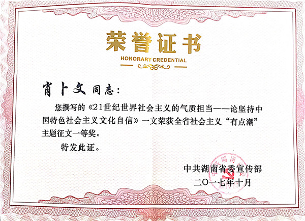 获省社会主义“有点潮”主题征文比赛一等奖