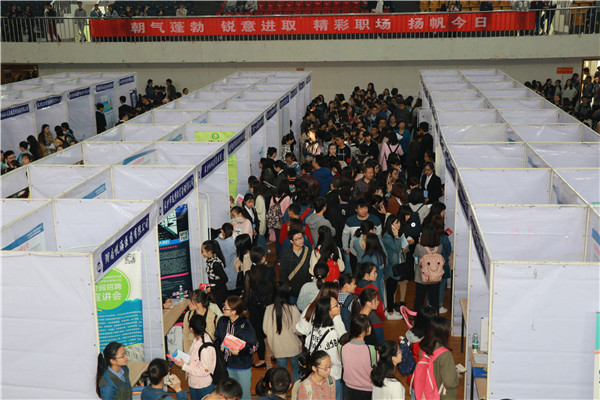 10月22日上午9点,“就业去哪儿”第二季秋季篇巡回校园招聘活动暨湖南中医药大学“2018届毕业生秋季供需见面会”在我校东塘体育馆成功举办。此次活动由湖南省人力资源服务中心主办,我校和湖南人才市场有限公司承办。副校长葛金文莅临现场,与用人单位和求职学生亲切交流。学校招生就业处、学生工作部、保卫处等相关单位负责人和各学院学生科老师到会。