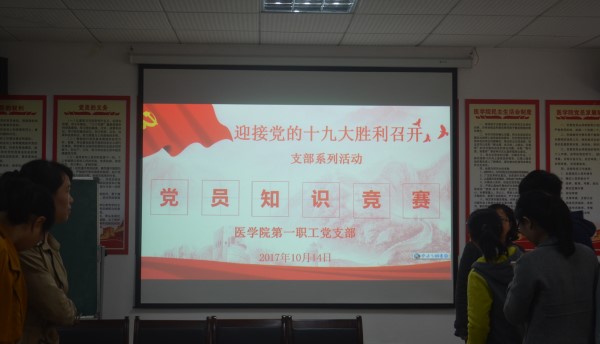 为深入贯彻习近平总书记系列重要讲话精神,以饱满的精神状态迎接党的十九大胜利召开,10月14日,医学院开展“喜迎党的十九大”为主题系列党员活动。