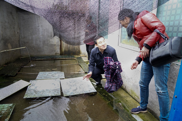 第二日清晨,冒着毛毛细雨,秦裕辉书记一行进村沿路边看边了解情况。到了石蛙养殖散户钟五生家,他仔细地询问,“石蛙养了多久,”“能卖多少钱一斤”。当得知这家农户不需要外出打工,在家里靠养石蛙、养猪就能养活一家老小,顺利脱贫,秦裕辉很是欣慰。一路走来,一条条通往村民家门口的入户水泥路,一台台增加了电容的变压器,一盏盏古朴外观的太阳能路灯,一排排整洁的钢筋水泥楼房,还有一张张洋溢着满足和感恩的笑脸,村容村貌发生了显著变化,村民的精神面貌也大为改观。