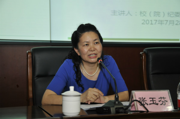 张玉芬以《坚持从严治党,筑牢拒腐防线》为题给与会人员上了一堂生动的党课,全面系统地讲述了当前腐败与反腐败斗争的形势、反腐倡廉新问题和违纪行为的主要表现、惩治腐败追责问责新要求、如何切实推进医院全面从严治党等内容,并对违反六大纪律的具体表现、如何落实“一岗双责”、扎实推进医院党建和党风廉政建设等工作进行了重点讲解。她要求医院党委及党支部要切实履行全面从严治党主责,要做好“预防、诊断、治疗”工作;医院纪委要始终突出监督执纪问责主业,要定位准,要有抓手;医院党的工作部门及职能部门要主动承担日常监督之职,要严格执行监督制度,加强职责范围内的党内监督工作。她强调医院全院上下要努力形成风清气正的氛围,要在四个方面下功夫:一是要进一步突出从严治党,坚持依法治院,统一思想,凝聚共识,把发展业务与管党治党紧密结合起来;二是要强化廉洁风险意识与责任,定期开展医院各岗位廉洁风险排查,建立健全风险防控机制,强化内部管理;三是要加强医德医风建设,坚持高标准与守底线相结合,增强干部职工拒腐防变能力;四是要加大违纪违规问题查处力度,正确运用监督执纪“四种形态”,保持正风反腐高压态势,强化“两个责任”的落实,努力打造全国领先、百姓满意的现代化中医品牌医院。