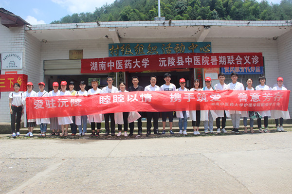 我校与沅陵县中医院暑期联合义诊活动于7月2日在怀化市沅陵县杜家坪村村级组织活动中心进行,护理学院“翼志愿”三下乡义诊队与县中医药医疗队为杜家坪村的村民提供医疗帮助,送诊送药。