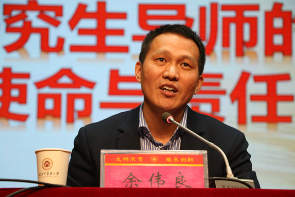余伟良受邀为开幕式作专题讲座,介绍了湖南省对培养博士、硕士研究生的基本情况和基本要求,对我校硕士点学术、科研、学生的满意度进行了评价,并表示导师应不断总结经验和教训,多方面、多系统的去引领、培养学生。