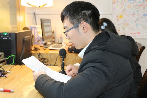 校广播站播音员播发“两会”新闻