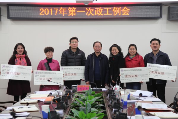会议通报了2016年度二级党组织建设、宣传思想和党风廉政建设考核优秀结果,肖小芹、张玉芬为获得考核优秀的大学机关党委、第二附属医院党委、马克思主义学院党总支、护理学院党委和湘杏学院党委共5个单位颁奖。