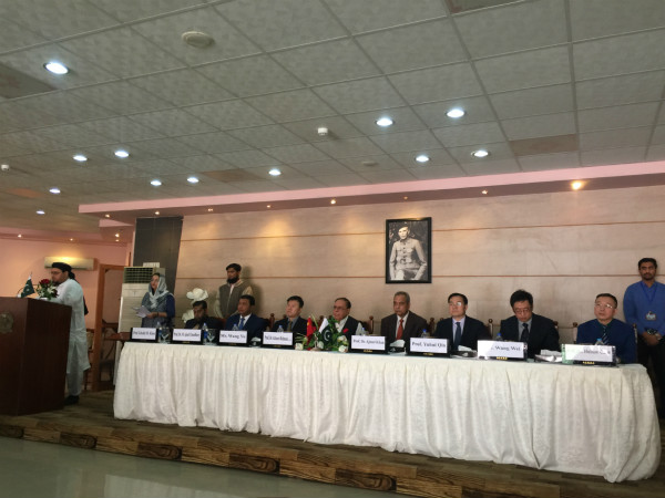 2月10日上午,巴基斯坦卡拉奇大学金色学术报告厅内,在中巴两国国歌声中和众多媒体的闪光灯下,由中国驻卡拉奇总领事王愚先生、湖南中医药大学秦裕辉校长、巴基斯坦科学院院长 Atta-ur-Rahman教授、巴基斯坦科技部科学基金会主席Ashraf博士、卡拉奇大学校长 Ajmal Khan教授,共同为中巴中医药民族医药研究中心隆重揭幕!