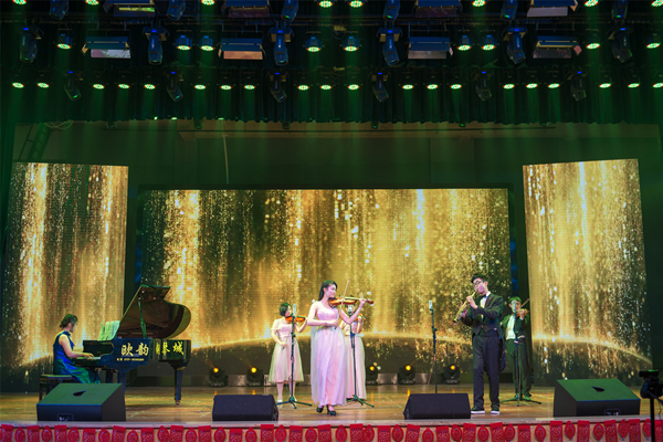 体育艺术学院李媛老师和校传保队带来的表演《潇湘神韵》让全场观众领略了长沙评弹这一非物质文化遗产的艺术魅力,用声音唤起老长沙的记忆,也为本场音乐会开启了第三篇章——“颂”;魏雪、郑叁倾情演奏了曾获省艺术节金奖的节目,古筝、钢琴协奏曲《梦回临安》,将东方与西方完美融合;特邀嘉宾青年演奏家万格格的钢琴独奏冷静内省,令人沉醉;在迎新晚会上以一曲《橄榄树》唱红校园的王军文和傅伟老师再次同台与青年教师张雪、成金林一起献上《经典联唱》引发观众热情互动;音乐会在获第三届湖南省青年文化艺术节金奖、由李媛老师指挥、校合唱队带来的无伴奏合唱《Loch Lomond》中完美落幕。