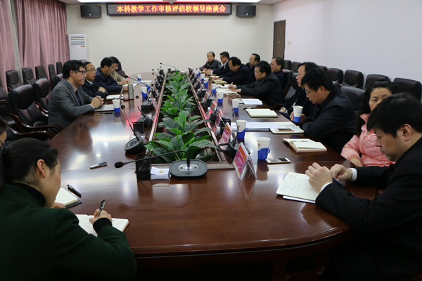 下午,梁繁荣在行政楼二楼会议室主持召开校领导座谈会,专家组成员高树中、夏赞才、王飞及我校全体校领导参会。专家们询问和了解了有关我校改革发展、本科教学工作等系列重大问题的基本情况,并就我校如何确保教学工作的中心地位和本科教学工作的基础地位;我校办学特色、优势;特色项目建设;师资队伍建设;教师教育发展中心的作用发挥;年青教师临床水平的提升;国际化、开放性办学;科研反哺本科教学工作;后勤保障;大学基本建设;医院如何确保与加强本科教学工作等问题,与我校领导进行了较为全面、细致、深入的沟通并达成共识。同时,校领导结合分管工作,对本科教学工作、审核评估工作、大学建设发展等提出了意见建议。