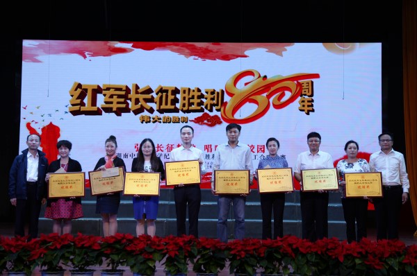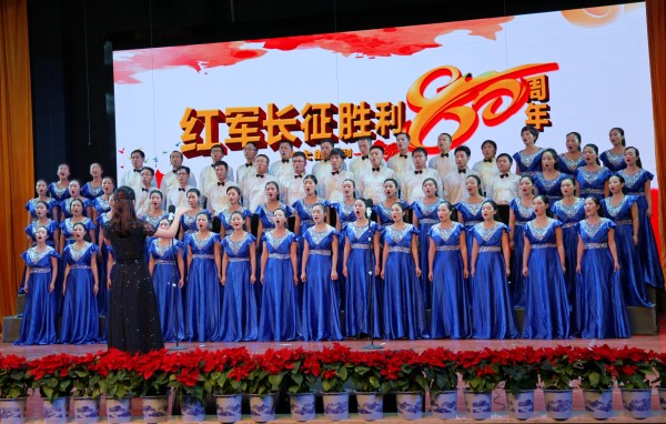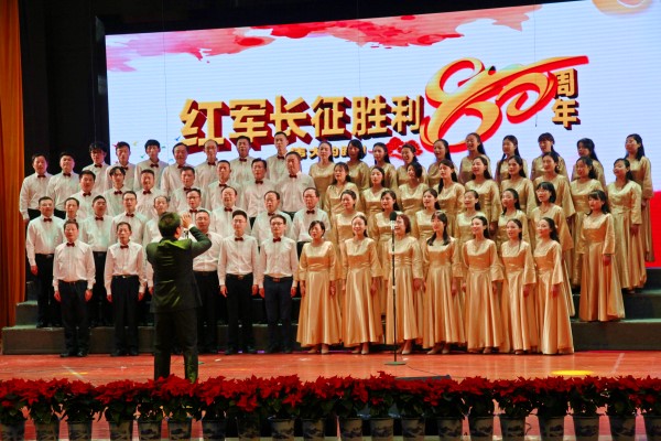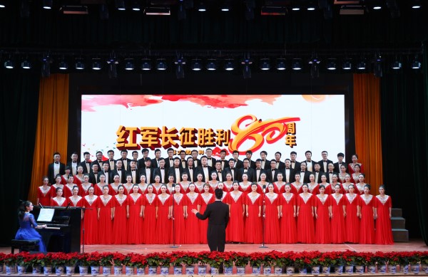 红军不怕远征难,万水千山只等闲。铁血长征,谱写壮丽史诗;不忘初心,踏上崭新征程。为纪念中国工农红军长征胜利80周年,激励全体党员职工继承和发扬伟大长征精神,为实现校(院)全面发展的第二次跨越团结奋斗,由校工会主办,校团委、党委宣传部协办,10月21日,我校(院)举行了纪念红军长征胜利80周年教职工合唱比赛。当晚,在家校(院)领导,校(院)职工党员代表、师生党员代表等近600人在含浦校区学生活动中心共同观赛。
