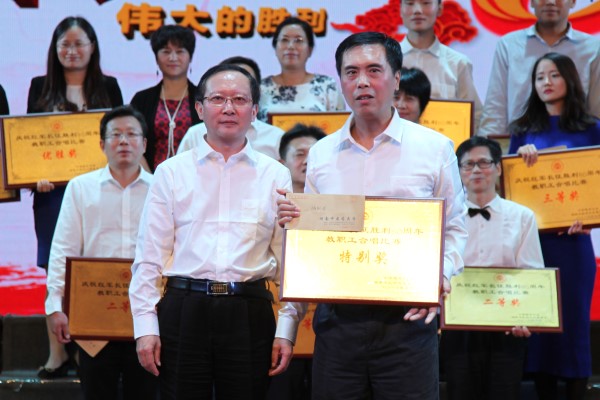 校(院)党委副书记、校工会主席肖小芹为获特别奖离退休处颁奖