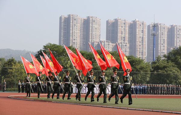 9月18日,2016级新生开学典礼暨军训总结观摩大会在含浦校区体育场举行。