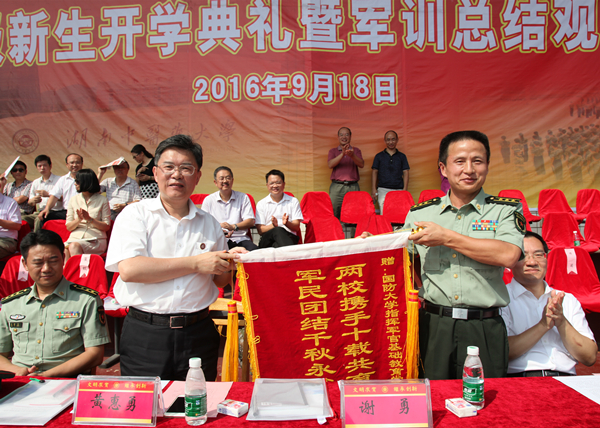 此次2016级新生开学典礼暨军训总结观摩大会,作为湖南省学生军训总结规范化观摩会,得到了国防科技大学、湖南省教育厅体卫艺处、湖南省军区作训处、湖南省军区教导大队、长沙市岳麓区人民武装部及兄弟院校等领导的大力支持。