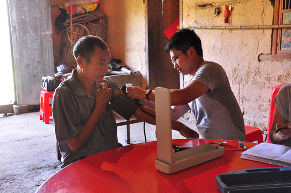 工作小组在大学驻村扶贫工作队队长胡晖、乡驻村干部等陪同下,一行人不畏酷暑,步行山路前往海拔1200余米高的山顶,逐家逐户开展慰问和送医送药活动。在贫困户家中,孙绍裘代表医院党委、行政给几户家庭送上了慰问金,并就大家的诉求进行了深入调研。医疗专家则对户主及其家人的健康状况进行详细诊察,并提出建议,同时免费赠送了一些常用药品。