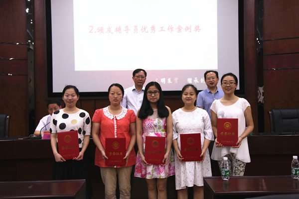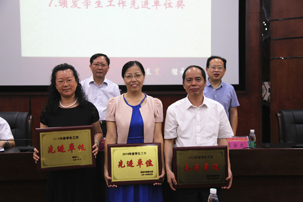 会上,肖小芹、葛金文为获奖学院和个人颁发了2015年度辅导员优秀论文和工作案例奖、2015级新生德育答辩活动优秀组织奖、十佳班主任和提名奖、湖南省第五届高校辅导员职业能力大赛初赛冠军奖、2015年度学生工作先进单位以及2015年度大学生心理健康教育工作先进单位奖。中医学院、中西医结合学院、管理信息工程学院王志辉老师分别代表获奖单位、获奖个人作典型发言。