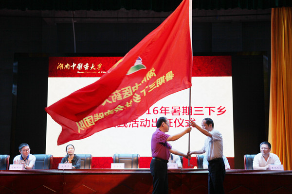 副校长葛金文为我校2016年暑期“三下乡”社会实践团队授旗