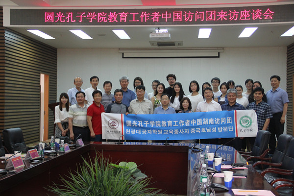 7月6日上午,韩国圆光大学国际交流处副处长赵衒佑率领韩国圆光保健大学副校长李学俊、圆光大学财团教育处长朴钟乐、韩国益山教育厅领导金贤贞等教育访问团一行11人,到我校进行交流访问。我校副校长葛金文、国际交流合作处处长李江山、韩国圆光大学首任中方院长刘向前与我校外事人员及我校第一期韩语培训班部分师生热情接待访问团一行,并举行了交流座谈会。交流座谈会由李江山主持。葛金文致欢迎辞,回顾了自2014年我校联合湖南师范大学、韩国圆光大学共建圆光大学孔子学院后,为进一步深化两校间的交流合作开展的各项工作。