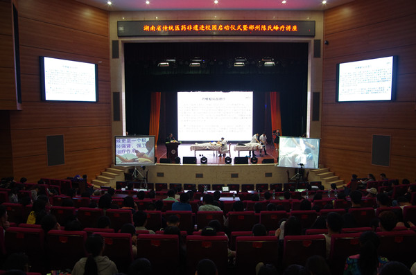 当晚,在湖南省文化厅的大力支持和指导下,由我校图书馆联合针灸推拿学院主办的“湖南省传统医药非遗进校园启动仪式暨郴州陈氏蜂疗学术讲座”在含浦校区学生活动中心举行。