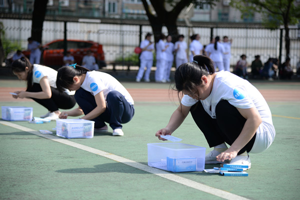 5月11日下午,我校湘杏学院体育广场,一场别开生面的“救”在身边——急救知识与技能趣味运动会正在热火朝天地举行。这是我校附一院全体护士为庆祝“5.12国际护士节”举行的特别活动,大家通过集救护技能知识与运动竞技相结合的趣味运动会,展示白衣天使精湛的业务技术、团结的协作氛围和良好的精神风貌,让大家在竞争中学会合作,在游戏中找到快乐,在运动中获得健康。