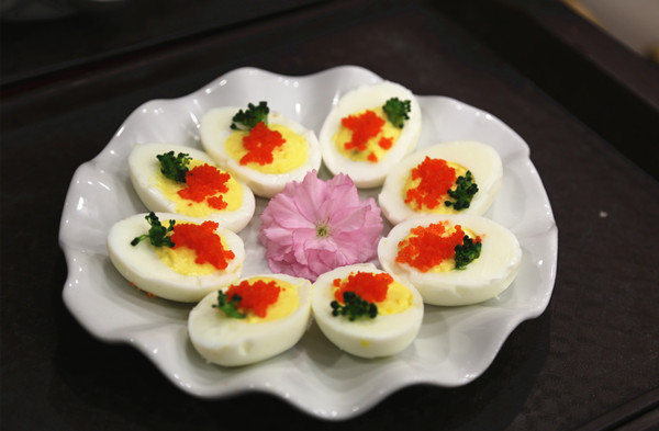 魔鬼蛋:以鸡蛋为主,加入淡奶油、沙拉酱、花生米、葡萄干等食料调匀烹饪。