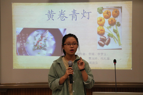 一场活色生香的味觉盛宴在古筝声、琵琶声中开启。从食材的甄选到药膳的设计制作,每一道菜都各具特色,巧妙将中药的养生与力求营养的膳食相结合。选手通过PPT向评委展示了药膳的制作原料、步骤及其药效,评委们对参赛作品的色、香、味、药效、创新性等方面进行判定打分。经过激烈比拼,竹林七贤队从九个参赛代表队中脱颖而出,以91分的高分斩获第一。