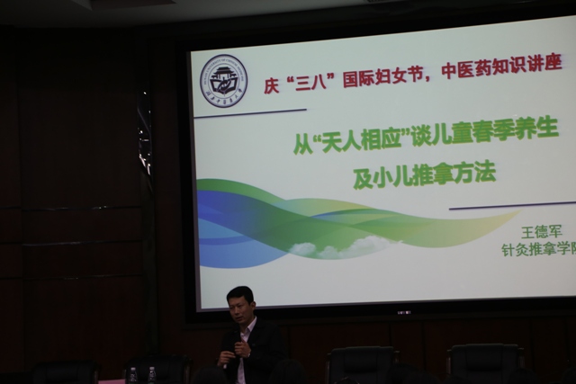 3月7日晚,校工会女工委员会与针灸推拿学院联合举办了一场名为“从‘天人相应’谈儿童春季养生及小儿推拿方法”的科普讲座,由我校知名小儿推拿专家王德军老师主讲,吸引了众多年轻妈妈捧场。