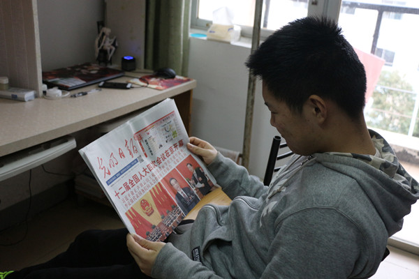走在校园里,报刊亭、图书馆、宣传栏……,“两会”的影子随处可见,我校学子也通过报纸、网络、主题宣讲等多种方式聚焦“两会”,关注时事热点,学习“两会”精神。(摄影/校报学通社)